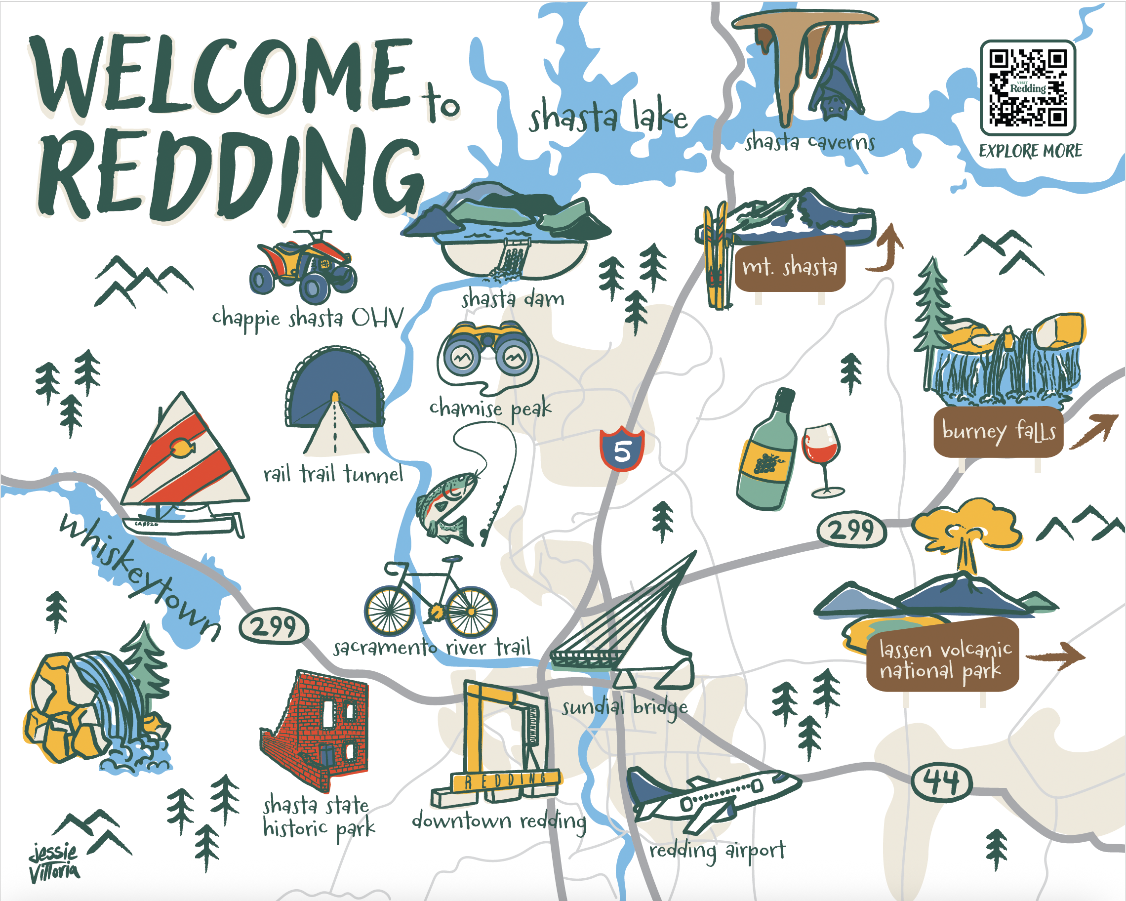 To celebrate the start of Denver service, Redding Municipal Airport and Visit Redding commissioned a mural that tells the story of the city and showcases the many adventures Redding offers. Since its installation, the mural has also become a popular photo spot for travelers stepping off the plane.